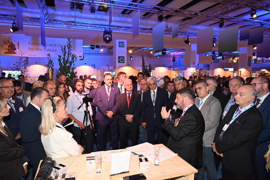 Πλήθος κόσμου στα εγκαίνια του Περιπτέρου της Περιφέρειας Αττικής στην 23η Ευρωπαϊκή Εβδομάδα Περιφερειών και Πόλεων – Ο Περιφερειάρχης, μαζί με την Πρόεδρο της Επιτροπής Μεταφορών και Τουρισμού του Ευρωπαϊκού Κοινοβουλίου Ελίζα Βόζεμπεργκ, παρουσίασε το νέο Μητροπολιτικό Πάρκο «Αέναον», καθώς και το ολιστικό πρόγραμμα αναβάθμισης των τριών Μητροπολιτικών Πάρκων της Αττικής.